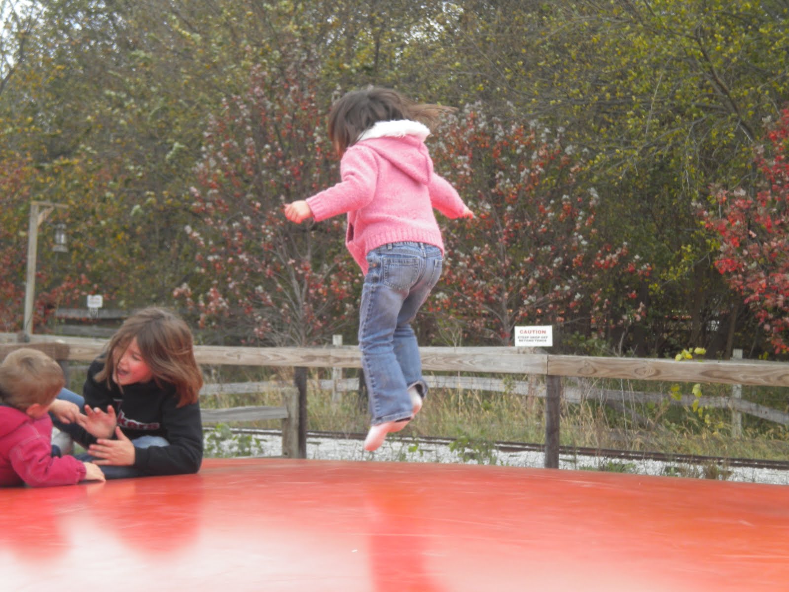 These are the coolest "jumping pillows"! Kind of like a trampoline, the kids love them! I caught Kennedy in mid-jump; Kyndal is playing with cousin, Ryder, to the left.